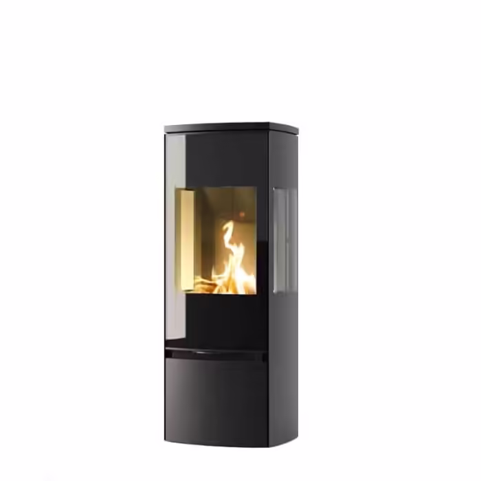 De Bella zijruit vrijstaande houtkachel heeft een elegant en tijdloos ontwerp. Het strakke en moderne uiterlijk wordt benadrukt door een volledig glazen voorkant met een deur die vanzelf sluit zonder handvat. Naast het grote raam in de deur, heeft deze kachel ook twee ramen aan beide zijkanten, waardoor je een prachtig zicht hebt op het vlammenspel vanuit alle hoeken. Als je een goed geïsoleerd en energiezuinig huis hebt of een huis met een lage warmtebehoefte, is de Bella houtkachel geschikt voor jou.
